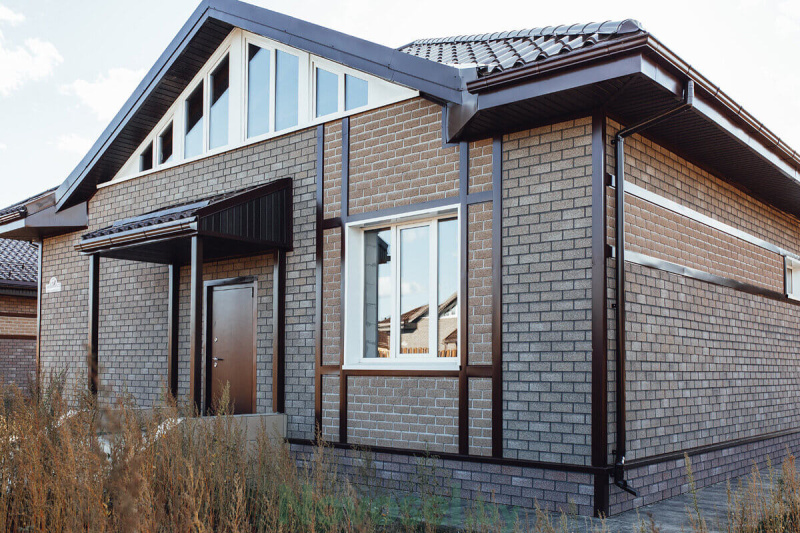 При помощи гибких фасадных панелей выполняют облицовку фасадов строений из дерева, пено- и газоблоков, заборов и ограждений, а также для декоративного оформления входных групп и фронтонов.