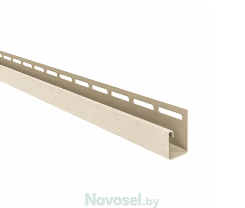 J профиль произведен из поливинилхлорида. Благодаря специальному составу ПВХ композиции изделие имеет высокую механическую прочность, морозостойкость и устойчивость к воздействию ультрафиолета. Профиль предназначен для обрамления горизонтально расположенных карнизных панелей. Деталь создает барьер от проникновения влаги и насекомых в пространство между стеной и отделкой.
