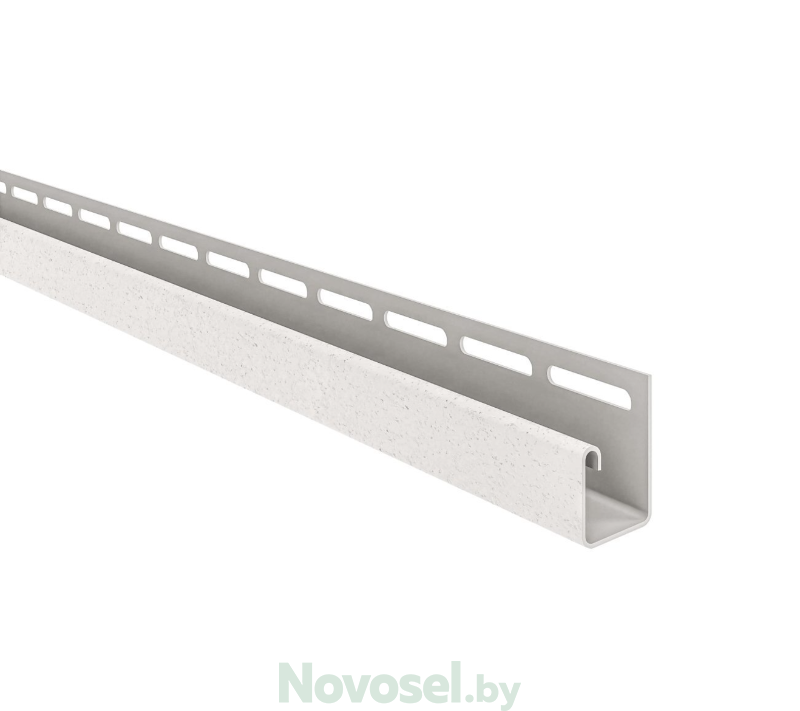 J профиль произведен из поливинилхлорида. Благодаря специальному составу ПВХ композиции изделие имеет высокую механическую прочность, морозостойкость и устойчивость к воздействию ультрафиолета. Профиль предназначен для обрамления горизонтально расположенных карнизных панелей. Деталь создает барьер от проникновения влаги и насекомых в пространство между стеной и отделкой.