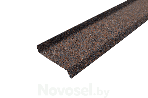 Планка для цоколя (гранулят) производится из прочной стали. Снаружи ее покрывают защитным слоем – гранулами из базальта под оттенок фасадной плитки HAUBERK от ТЕХНОНИКОЛЬ.