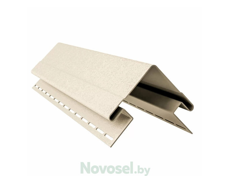 Угол произведен из поливинилхлорида. Благодаря специальному составу ПВХ композиции изделие имеет высокую механическую прочность, морозостойкость и устойчивость к воздействию ультрафиолета. Такой доборный элемент применяется для оформления угла при монтаже софитов на лобовую (или торцевую доску), крепления софитов на карнизном (или фронтонном) свесе кровли.