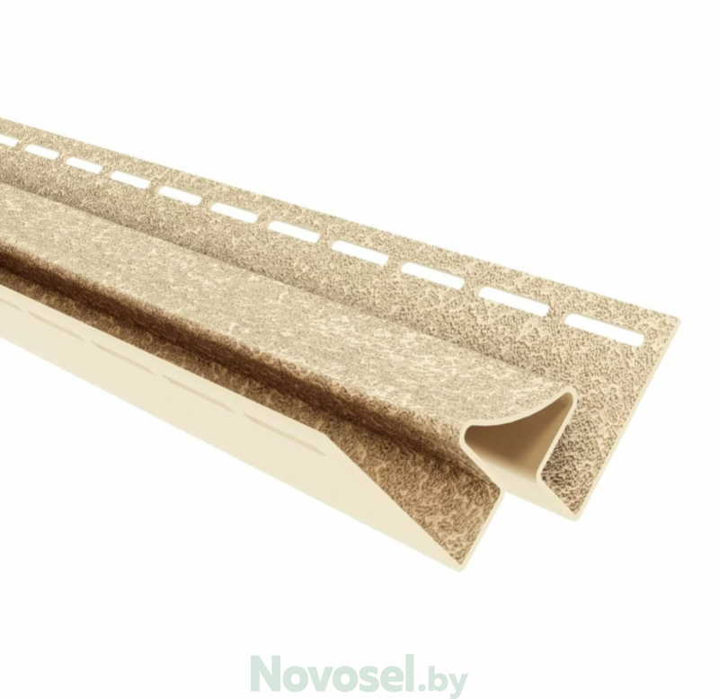 Угол произведен из поливинилхлорида. Благодаря специальному составу ПВХ композиции изделие имеет высокую механическую прочность, морозостойкость и устойчивость к воздействию ультрафиолета. Такой доборный элемент используется для соединения торцов панелей на стыках, внутренних углах стен, декоративного оформления перехода от панелей к подшивке карнизного свеса, если применяется софит.