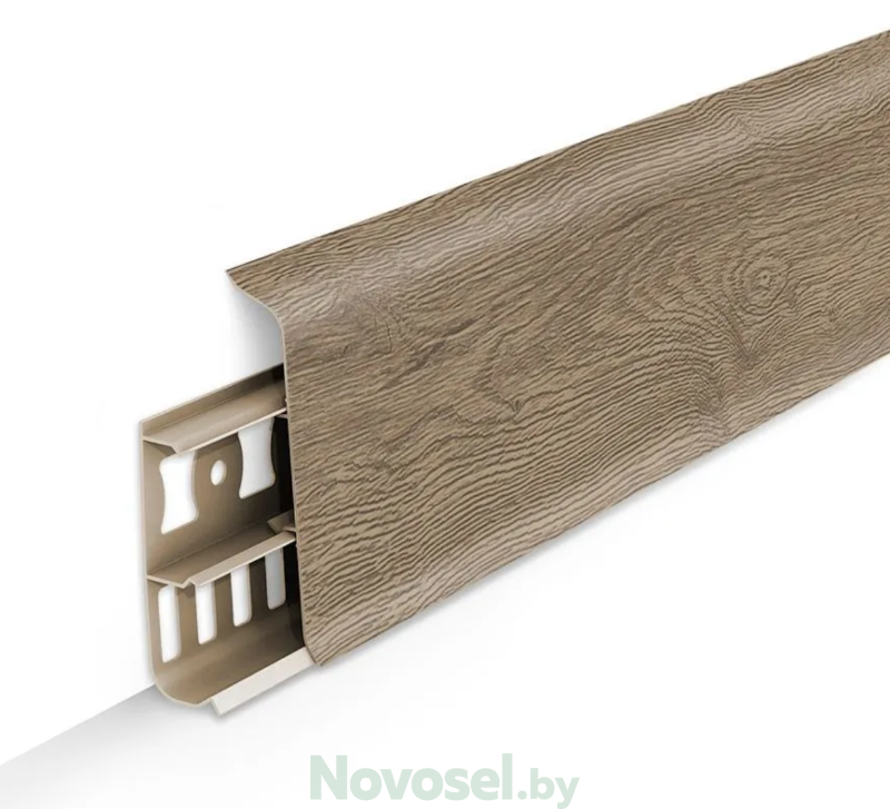 Производитель Ideal Коллекция Деконика Страна производства Россия Цвет бежево-коричневый, бежевый Материал ПВХ Назначение для ламината, для линолеума, для пола Помещение/здание для ванной и туалета, для дома/коттеджа, для квартиры, для комнаты, для коридора, для кухни Область применения внутри Поверхность структурная Степень блеска мат Стиль классический Тон светлый Имитация материала дерево Имитация дерева дуб Способ укладки на монтажную планку Форма прямая Длина, мм 2200 мм Особенности декоративное, с мягким краем, цветное Свойства влагостойкое, моющееся Кабель-канал 3 кабель-канала Высота по стене, мм 85 мм Ширина по полу, мм 22 мм