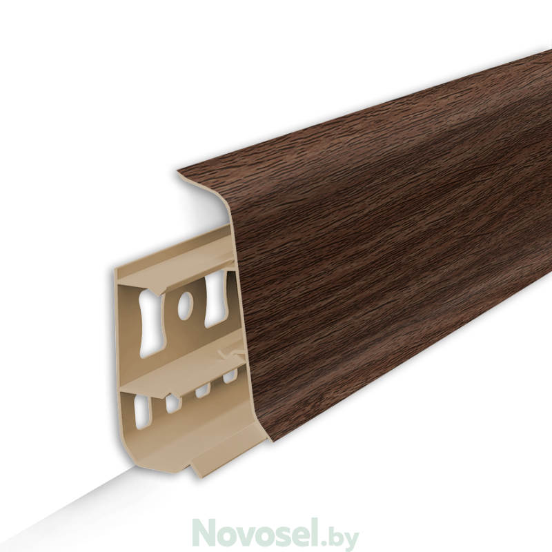 Производитель Ideal Коллекция Деконика Страна производства Россия Цвет коричневый, темно-коричневый Материал ПВХ Назначение для ламината, для линолеума, для пола Помещение/здание для ванной и туалета, для дома/коттеджа, для квартиры, для комнаты, для коридора, для кухни Область применения внутри Поверхность структурная Степень блеска мат Стиль классический Тон темный Имитация материала дерево Имитация дерева орех Способ укладки на монтажную планку Форма прямая Длина, мм 2200 мм Особенности декоративное, с мягким краем, цветное Свойства влагостойкое, моющееся Кабель-канал 3 кабель-канала Высота по стене, мм 55 мм Ширина по полу, мм 21 мм