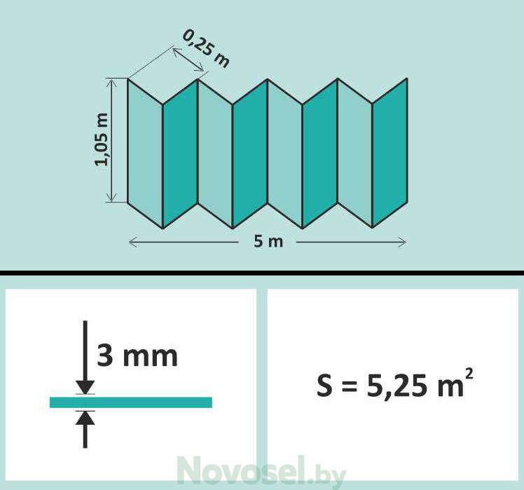 Размер в развернутом виде: 1050х5000 мм