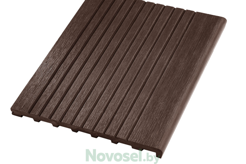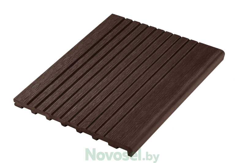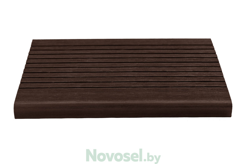 Ступени из материала ДПК идеально подходят для крыльца, террасы, лестницы. Сплошной профиль имеет повышенную прочность и износостойкость с противоскользящим эффектом за счет широкореберной текстуры.