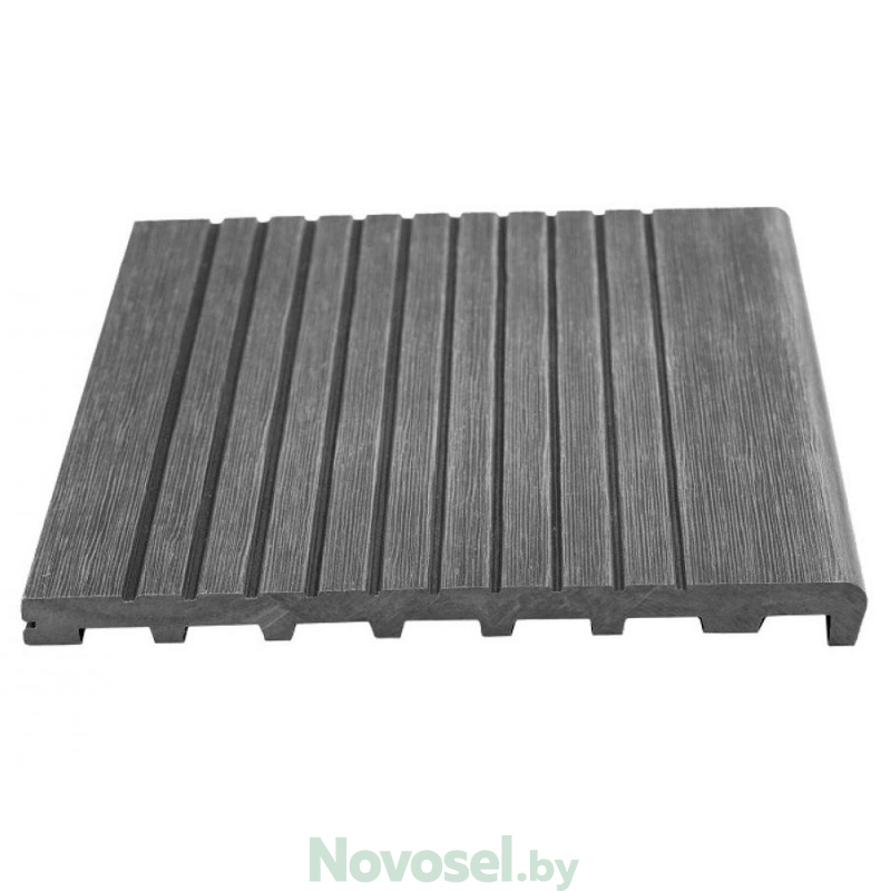 Ступени из материала ДПК идеально подходят для крыльца, террасы, лестницы. Сплошной профиль имеет повышенную прочность и износостойкость с противоскользящим эффектом за счет широкореберной текстуры.