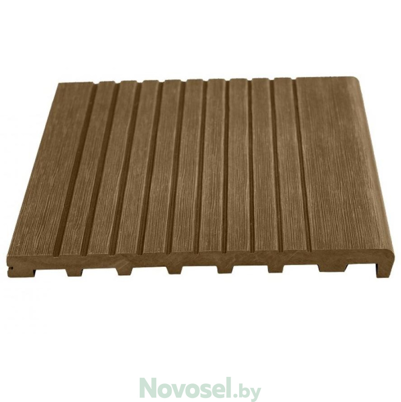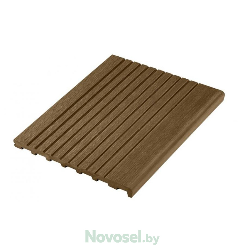 Ступени из материала ДПК идеально подходят для крыльца, террасы, лестницы. Сплошной профиль имеет повышенную прочность и износостойкость с противоскользящим эффектом за счет широкореберной текстуры.