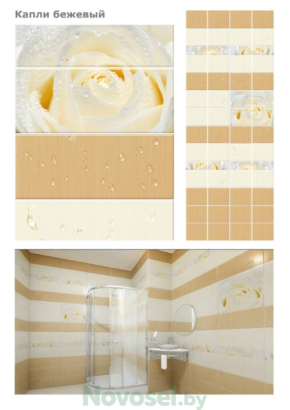 Производитель Кронапласт Коллекция Unique Страна производства Россия Цвет бежевый, разноцветный, светло-бежевый, темно-бежевый Материал ПВХ Назначение для стен Помещение/здание для балкона/лоджии, для ванной и туалета, для дачи, для дома/коттеджа, для душевой, для коридора, для кухни Область применения внутри Поверхность гладкая Покрытие лак Степень блеска глянец Стиль современный Тон светлый Имитация материала плитка Количество штук в упаковке 12 Способ укладки бесшовный, клеевой Толщина, мм 8 мм Рисунок капли, роза, с фризом, цветы Площадь панели, м.кв. 0.675 Форма прямоугольная Форма выпуска панель Длина, мм 2700 мм Способ нанесения рисунка фотопечать Ширина, мм 250 мм Количество секций односекционные Вид стандартные Особенности вертикальные, интерьерные, легкие, с рисунком, цветные Свойства влагостойкие Размер панели 2700*250*8 мм