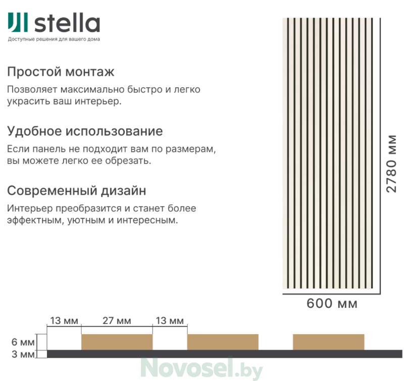 Производитель Stella Коллекция Comfort Standart Страна производства Россия Цвет бежево-коричневый, бежевый Материал МДФ, войлок Назначение для дверей, для потолка, для стен, под телевизор Помещение/здание для гостиной, для дачи, для дома/коттеджа, для зала, для квартиры, для комнаты, для коридора, для магазина/ТЦ, для офиса, для прихожей, для спальни Область применения внутри Поверхность рельефная Покрытие пленка Степень блеска мат Стиль лофт, современный Тон светлый Имитация материала дерево Имитация дерева пекан Количество штук в упаковке 1 Способ укладки клеевой Толщина, мм 9 мм Рисунок полоски Формат широкий Площадь панели, м.кв. 1.668 Форма прямоугольная Форма выпуска панель Длина, мм 2780 мм Тип соединения шип-паз Ширина, мм 600 мм Количество секций односекционные Вид реечные Освещение без подсветки Особенности вертикальные, интерьерные, наборные, цветные, экологичные Свойства акустические Размер панели 2780*600*9 мм