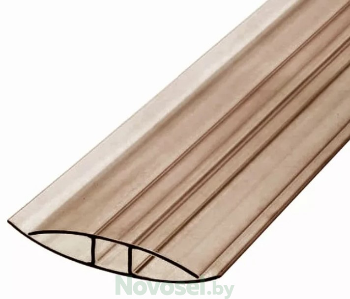 Неразъемный соединительный профиль — самый простой и недорогой способ соединения панелей сотового поликарбоната с одновременным креплением их к каркасу конструкции на одно/двускатных кровлях.